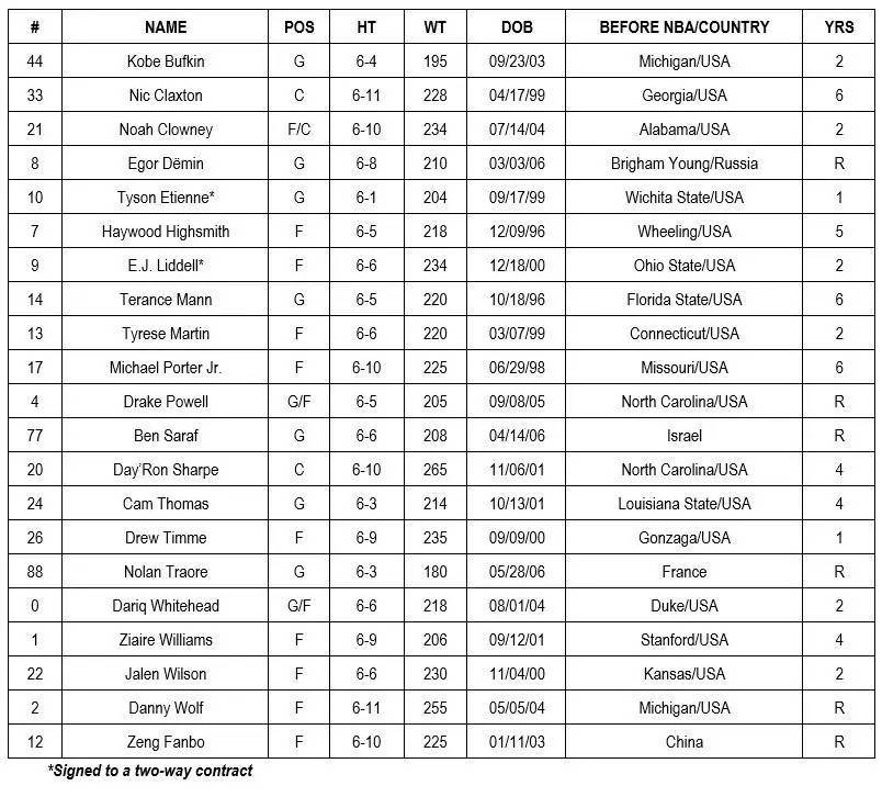 篮网公布21人训练营名单 曾凡博在列身披12号球衣